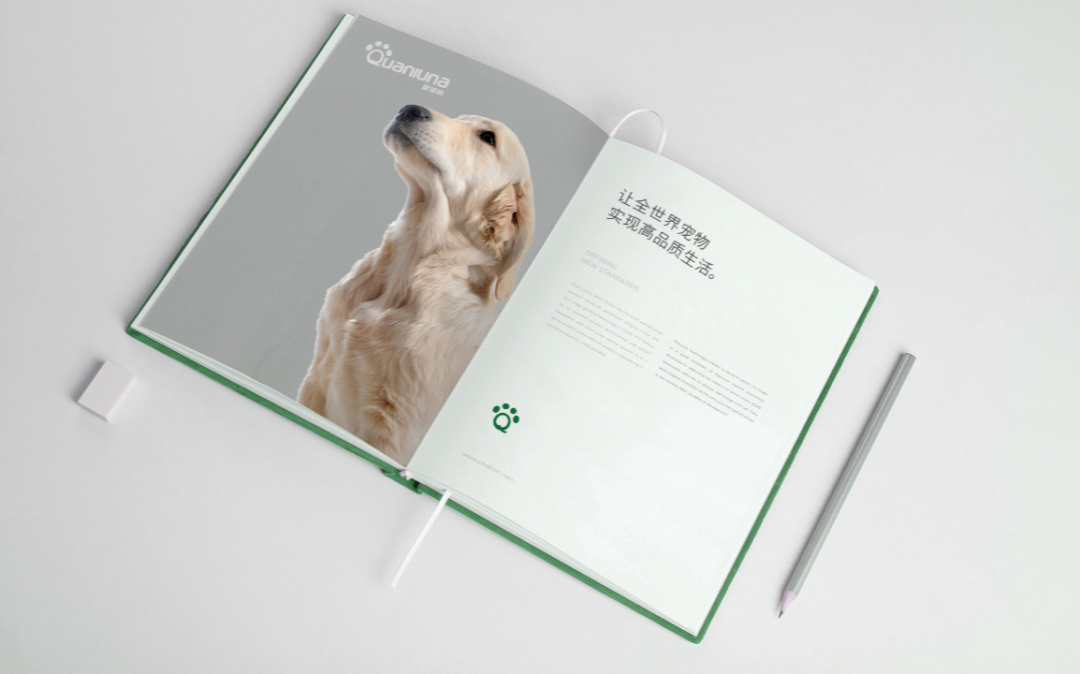 泉禄纳是青岛的宠物零食厂家,主要进出口宠物零食,产品全部采用纯天然食用级鸡鸭胸肉、牛肉、羊肉、鱼肉等为原料,经过特殊工艺烘焙加工而成,种类多达60多种,主要出口韩国、美国、加拿大、欧盟、日本等国。泉禄纳在发展中沉淀了优秀的企业文化,现公司规模扩大,但品牌原创设计风格尚未形成,悟本集合泉禄纳品牌行业特性,升级品牌标志,为其注入新鲜活力。2、保留英文字标,优化字体,传达国际化,专业,信赖的品牌气质本次升级重点从字体优化、比例调整等方面出发,使优化后的logo以更活泼的笔触、更凸显的宠物手掌图形去吸引消费者的注意。